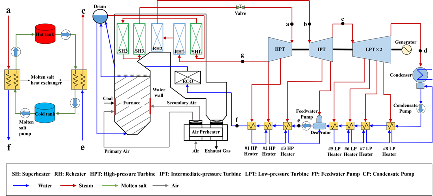 1. 建立了耦合熔鹽儲熱的燃煤電廠系統(tǒng)級動態(tài)模型。