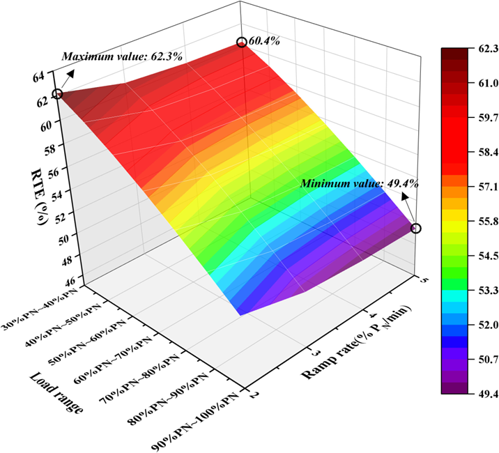 3. 分析了負荷范圍與爬坡速率對耦合系統(tǒng)?效率的影響。