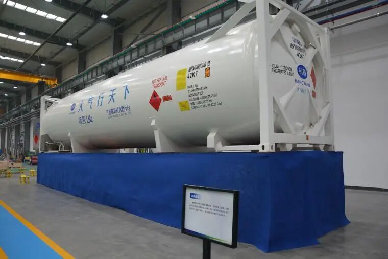 聚焦氫能產(chǎn)業(yè)鏈中游儲運(yùn)環(huán)節(jié),杭氧自主研發(fā)的大型液氫儲罐吸引記者注意。據(jù)介紹,該液氫儲罐為江氧多式聯(lián)運(yùn)液氫罐箱,采用40英尺標(biāo)準(zhǔn)集裝箱框架,主要用于液氫的海上運(yùn)輸、公路運(yùn)輸以及終端的液氫存儲。其絕熱性能指標(biāo)達(dá)到了國內(nèi)領(lǐng)先、國際先進(jìn)水平,無損存儲時(shí)間最長可達(dá)50余天,為未來實(shí)現(xiàn)液氫全球貿(mào)易提供了堅(jiān)實(shí)保障。
