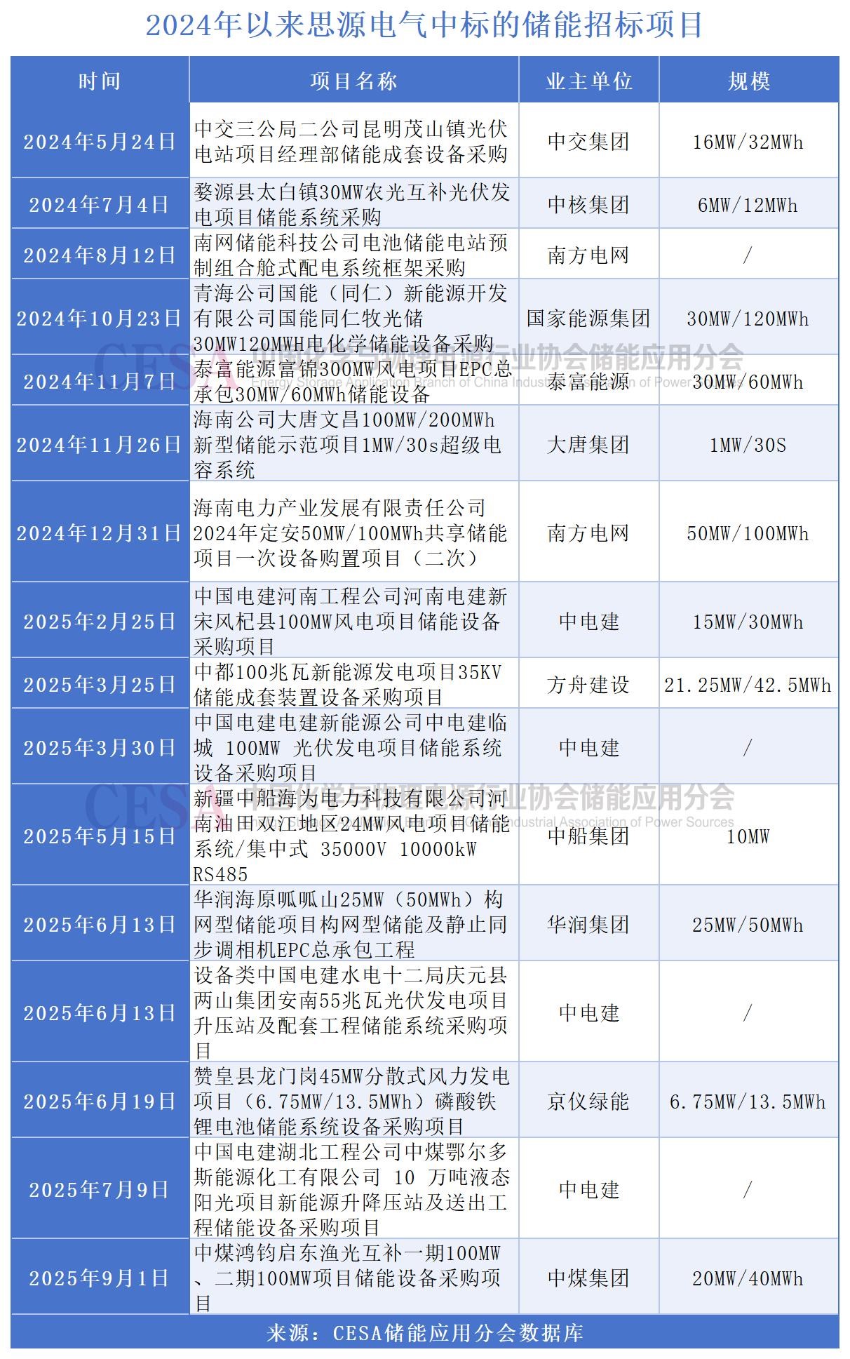 招投標(biāo)市場(chǎng)中,據(jù)CESA儲(chǔ)能應(yīng)用分會(huì)不完全統(tǒng)計(jì),2024年5月以來,思源電氣中標(biāo)了16個(gè)儲(chǔ)能項(xiàng)目采購(gòu),也有數(shù)據(jù)顯示,僅在2024年,該公司儲(chǔ)能系統(tǒng)累計(jì)中標(biāo)約2.4GWh,市場(chǎng)份額居行業(yè)前列。