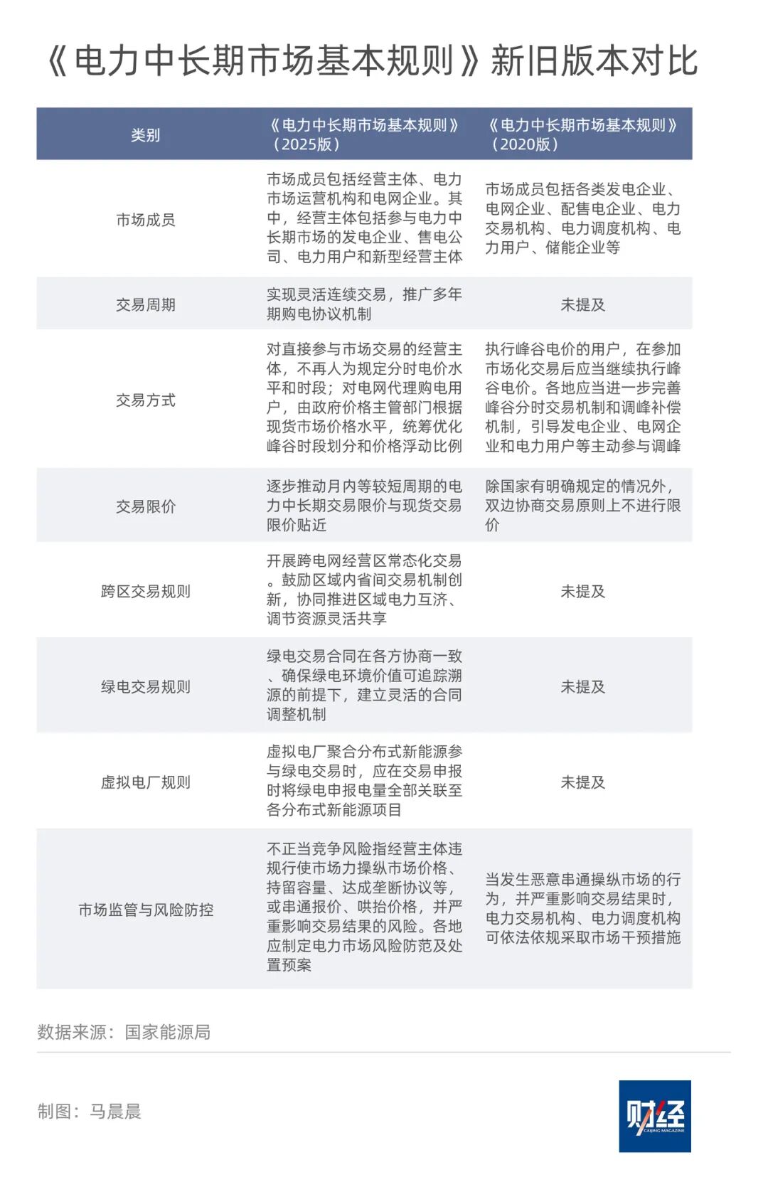 此外,新《規(guī)則》還在市場成員、交易周期、交易限價,以及跨區(qū)交易、綠電交易、虛擬市場等方面作出調(diào)整。例如,在原有的市場成員中加入“新型經(jīng)營主體”,推動中長期交易向“更長”和“更短”周期延伸;開展跨電網(wǎng)經(jīng)營區(qū)常態(tài)化交易;推動月內(nèi)等較短周期的電力中長期交易限價與現(xiàn)貨交易限價貼近等。