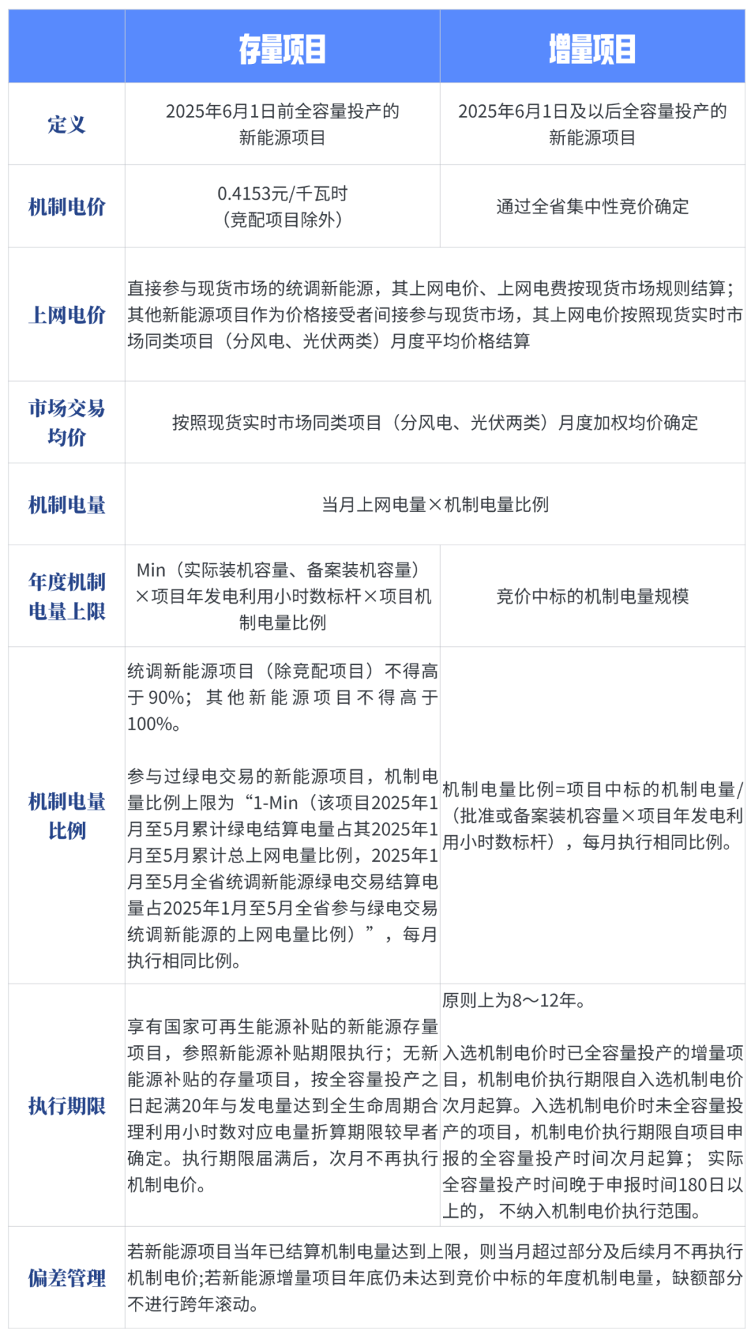 為做好改革政策銜接,浙江按照國家136號文要求,印發(fā)了《浙江省新能源上網(wǎng)電價市場化改革實施方案》及配套細則(浙發(fā)改能源〔2025〕250號),以2025年6月1日起全容量投產(chǎn)為界,區(qū)分存量項目與增量項目,并分別在市場外建立差價結(jié)算機制,以保障新能源收益相對平穩(wěn)。