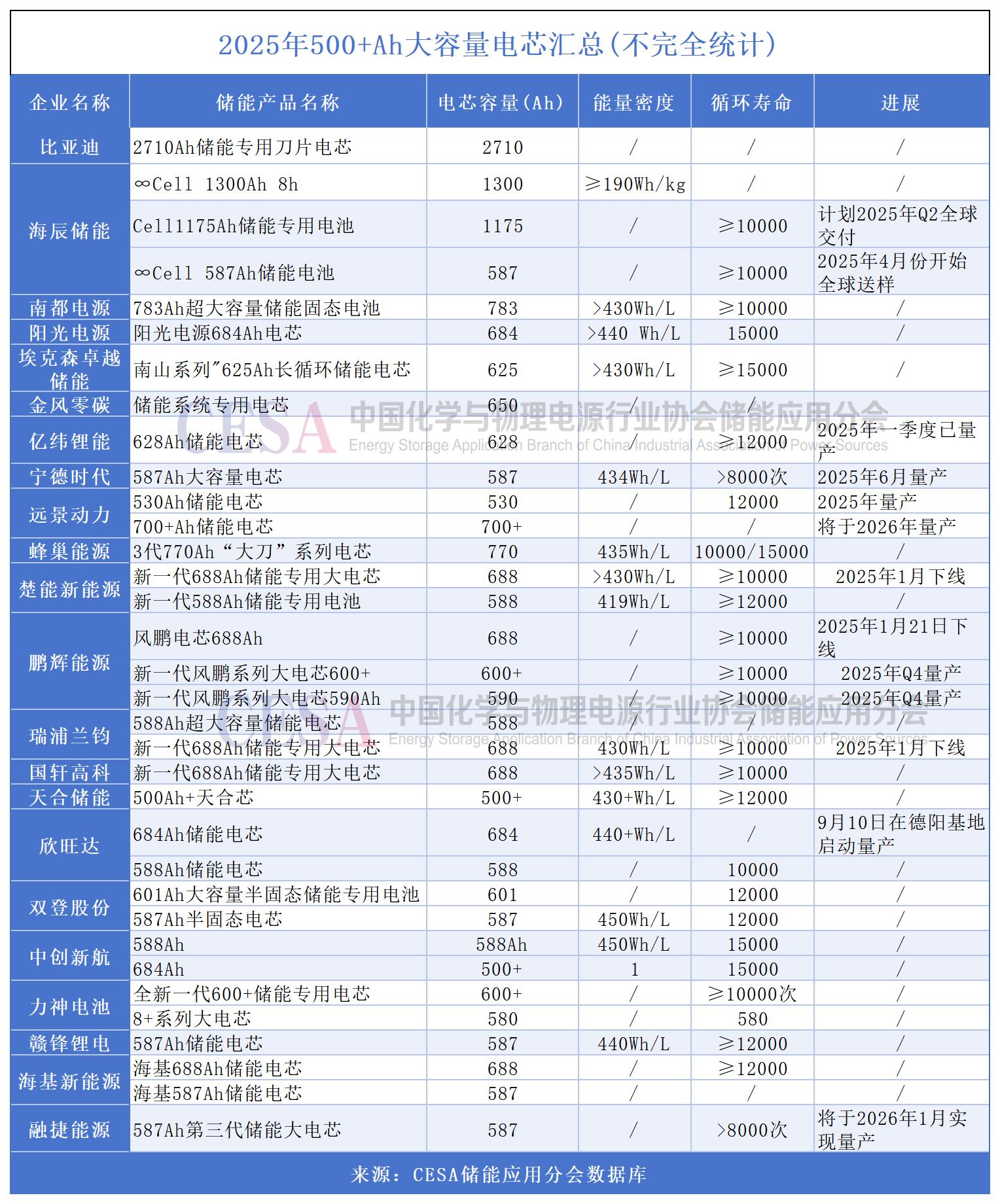 從產(chǎn)業(yè)鏈跟進(jìn)角度看,除了,寧德時代、海辰儲能,?;鶅δ堋Ⅸi程無限、贛鋒鋰電等鋰電企業(yè)也推出自有587Ah產(chǎn)品。