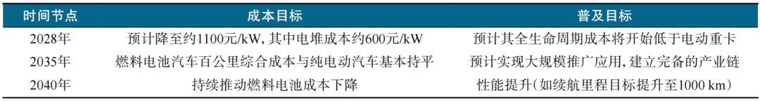 表2 成本降低目標(biāo)和普及時(shí)間預(yù)測(cè)表