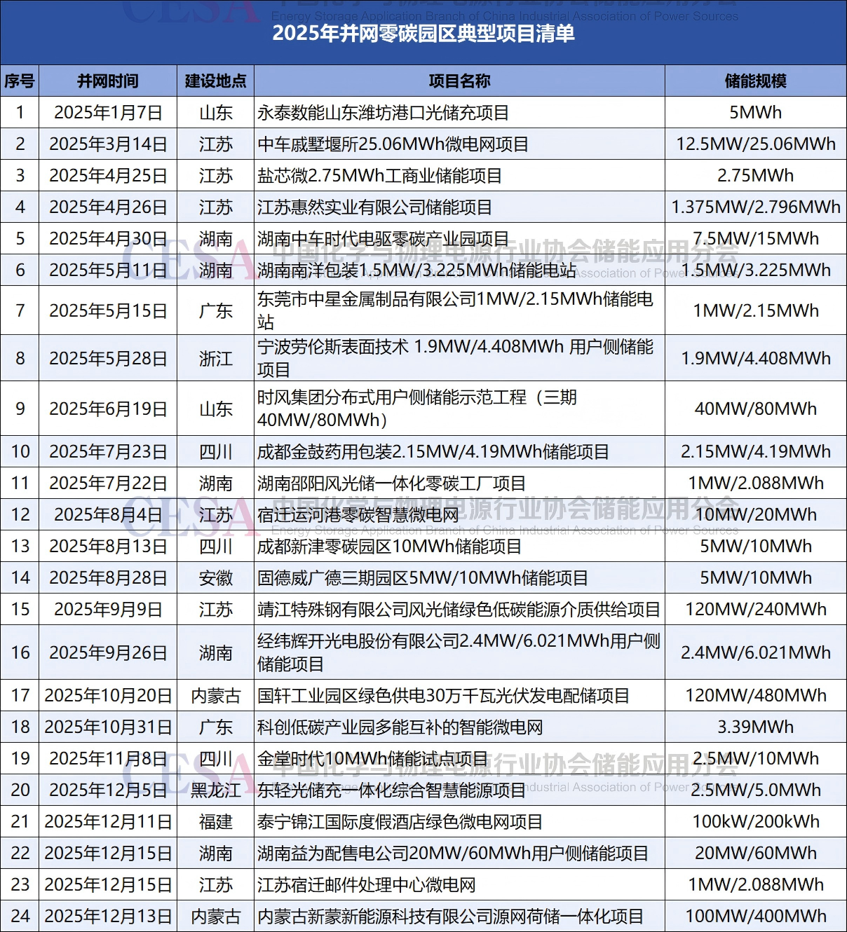 據(jù)CESA儲能應(yīng)用分會數(shù)據(jù)庫不完全統(tǒng)計,2025年以來,江蘇、湖南、四川等10個省份24個零碳園區(qū)項目并網(wǎng),容量規(guī)模近1.4GWh。