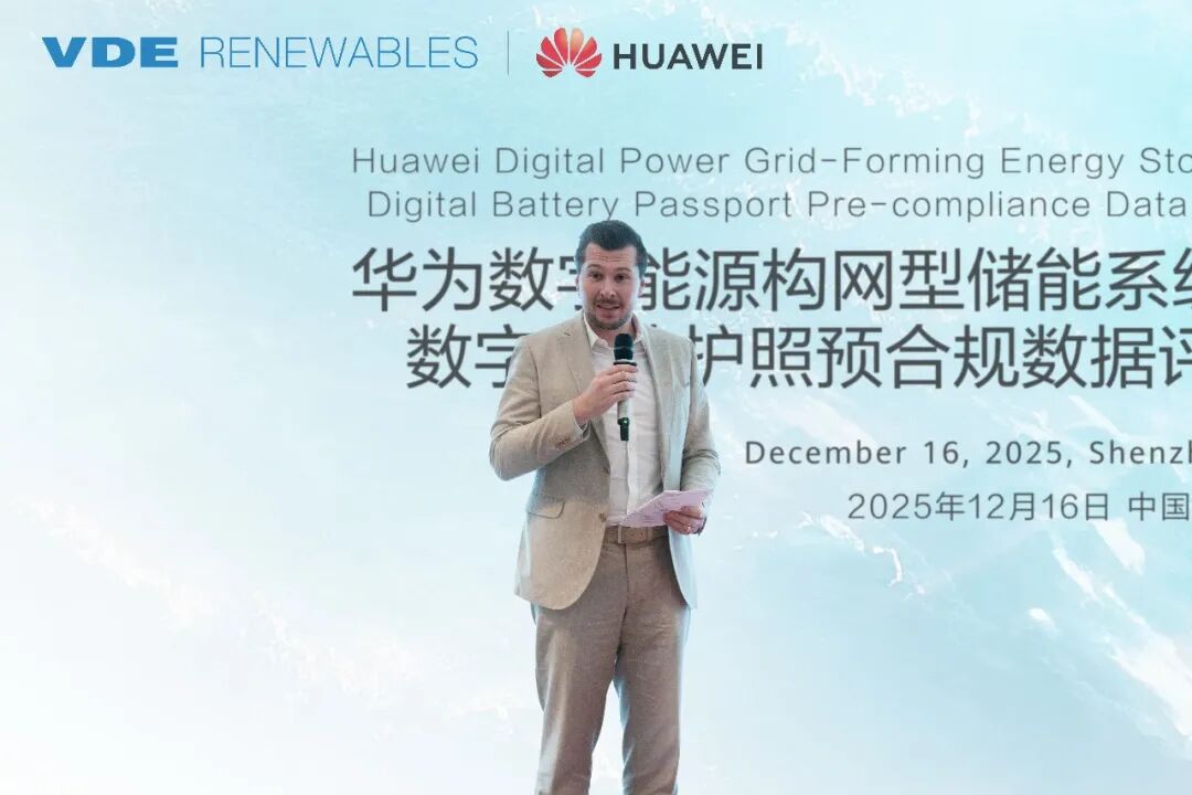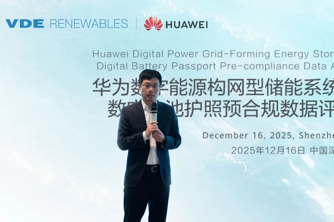 中國儲(chǔ)能網(wǎng)訊:[中國,深圳,2025年12月16日] 華為數(shù)字能源與全球公認(rèn)的第三方質(zhì)量保證、測試、認(rèn)證和風(fēng)險(xiǎn)管理機(jī)構(gòu)德國VDE Renewables(以下簡稱“VDE”)聯(lián)合完成華為構(gòu)網(wǎng)型儲(chǔ)能系統(tǒng)LUNA2000系列電池護(hù)照預(yù)合規(guī)數(shù)據(jù)評(píng)估,榮獲VDE頒發(fā)的全球首個(gè)電池護(hù)照預(yù)合規(guī)數(shù)據(jù)評(píng)估認(rèn)證。同期舉辦頒證儀式,標(biāo)志著華為數(shù)字能源在電池全生命周期數(shù)字化與合規(guī)管理方面位居全球領(lǐng)先,為儲(chǔ)能行業(yè)加速向高質(zhì)量發(fā)展樹立了重要標(biāo)桿。