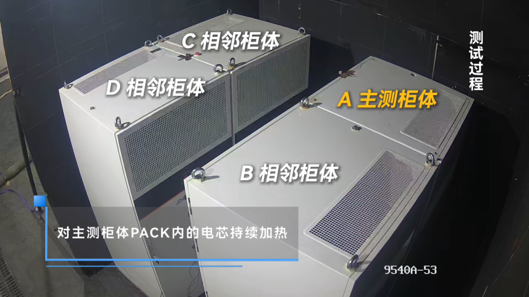 主測(cè)柜體:?jiǎn)蝹€(gè)PACK被觸發(fā)熱失控時(shí),失控電芯的溫度峰值達(dá)800℃以上,然而,柜體穩(wěn)如磐石——未起火、未爆炸、未解體,內(nèi)部主體結(jié)構(gòu)保持完整,外觀也無明顯損傷。