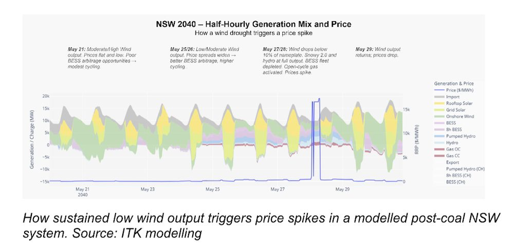 研究發(fā)現(xiàn)煤電退出后NEM模型中常見的一種價格飆升機制:持續(xù)的風電出力下降首先擴大日內(nèi)價差,促使BESS更頻繁地充放電套利。