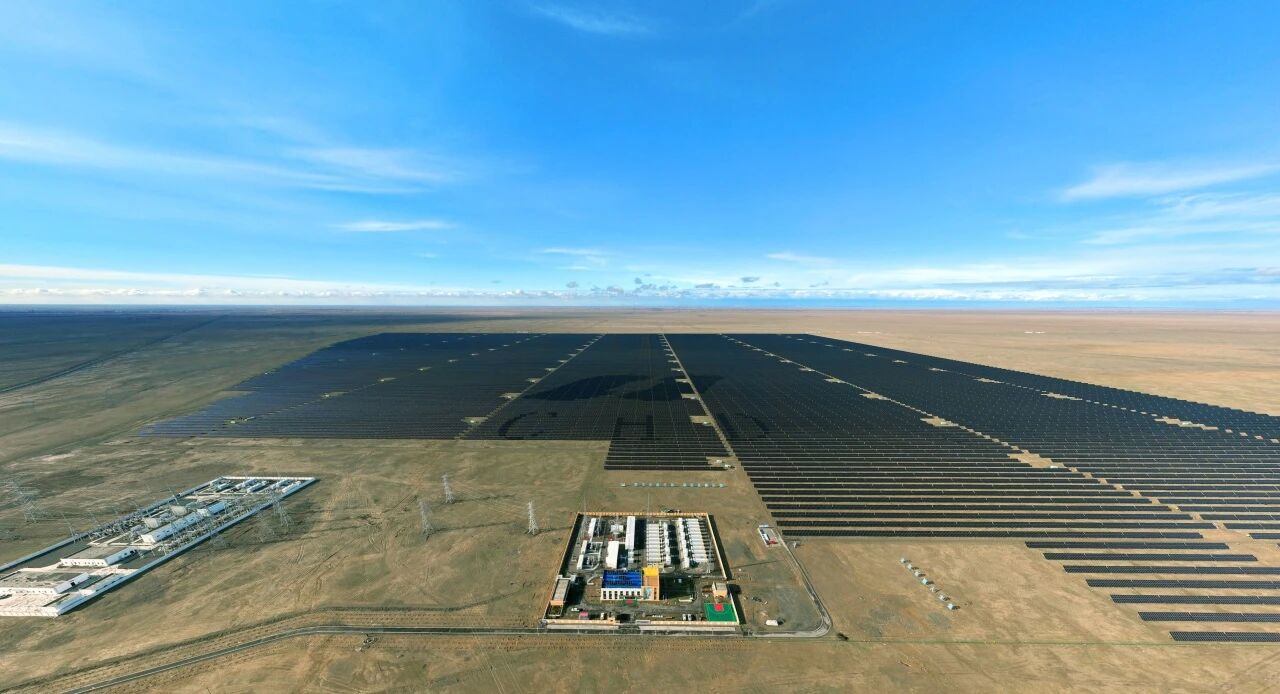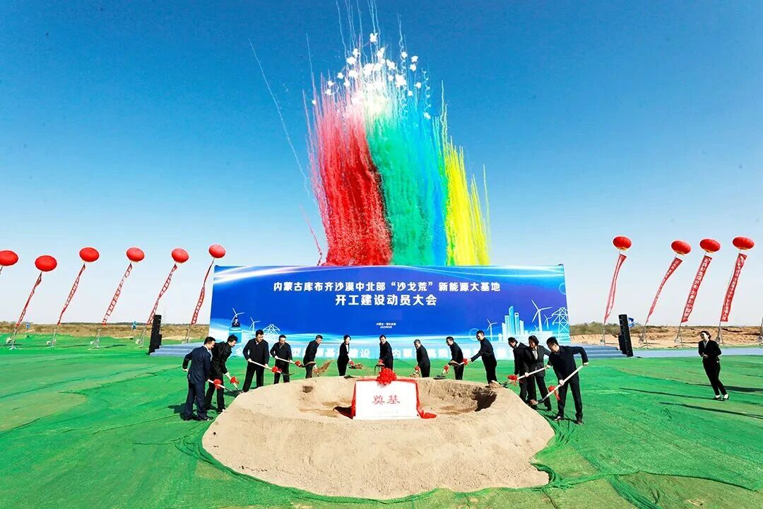 2025 年 9 月 29 日,由三峽集團牽頭、聯(lián)合內(nèi)蒙古能源集團建設(shè)的 “內(nèi)蒙古庫布齊沙漠中北部新能源大基地” 全面開工。圖片來源:央視新聞