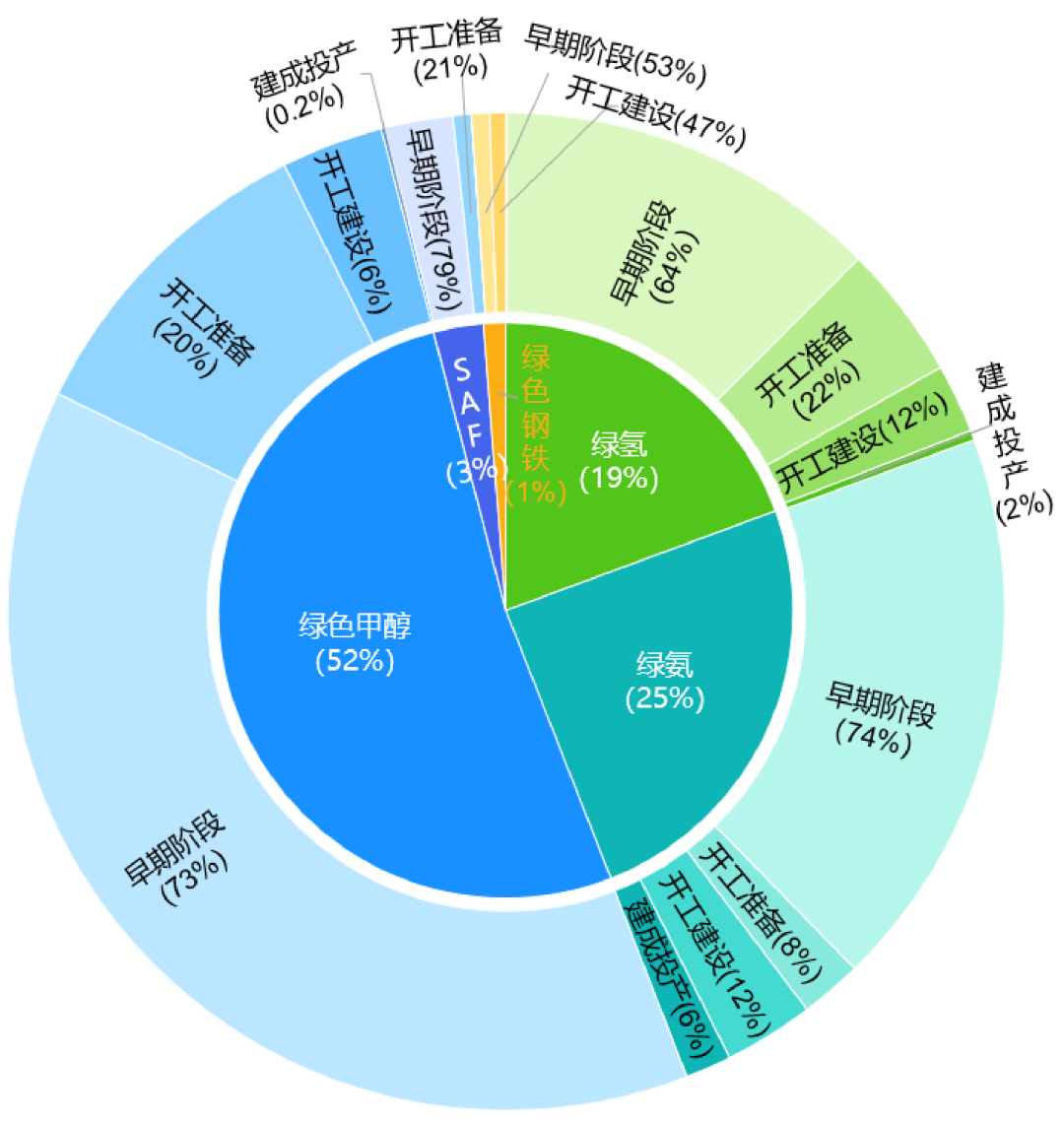 圖2 2025年綠色氫氨醇項(xiàng)目進(jìn)展(按氫當(dāng)量比例)