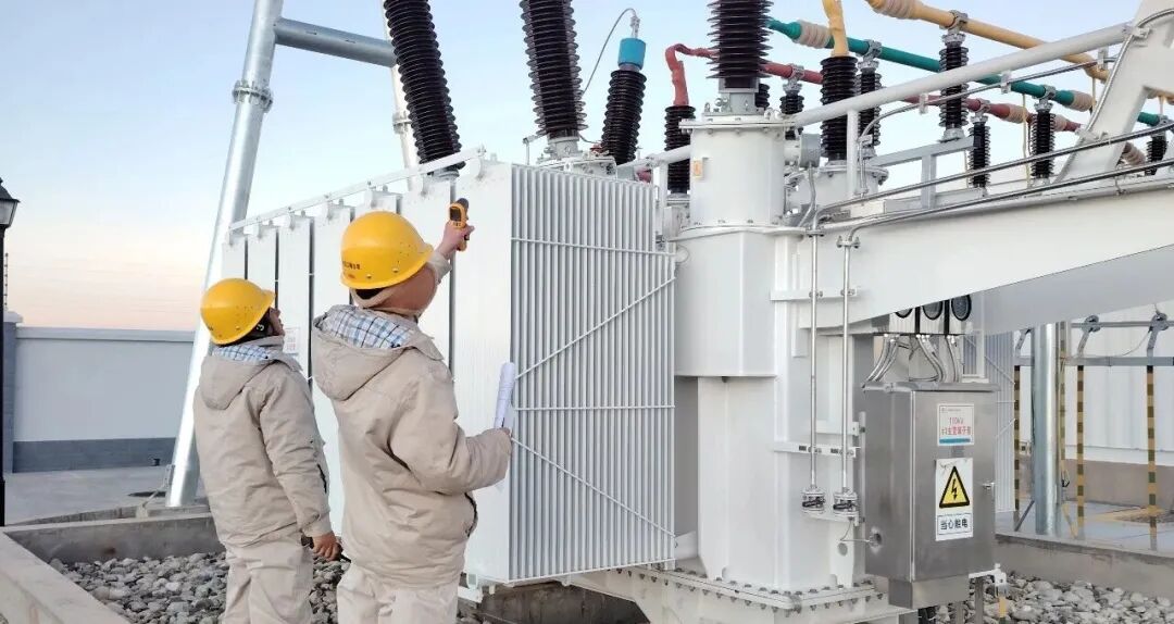 運維人員在巡檢過程中進(jìn)行110kV主變測溫。