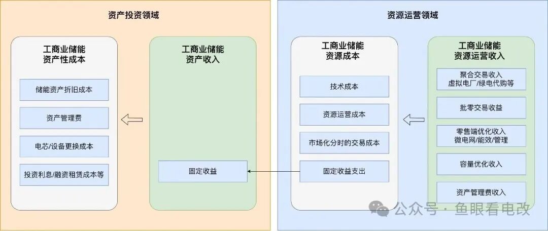 邏輯一:資產(chǎn)性邏輯,即儲(chǔ)能作為一種重資產(chǎn)模型,成本項(xiàng)目包括折舊、管理費(fèi)、設(shè)備更換、財(cái)務(wù)利息等;而收益項(xiàng)目為保底型的收入,這個(gè)保底由運(yùn)營(yíng)方(可以是資方的運(yùn)營(yíng)團(tuán)隊(duì),也可以是第三方運(yùn)營(yíng)團(tuán)隊(duì))進(jìn)行拖底,而資方需要為此支付資產(chǎn)管理費(fèi)。