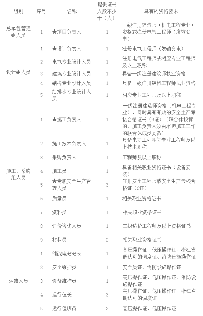 ?3.11(1)投標(biāo)截止時(shí)間工程總承包項(xiàng)目負(fù)責(zé)人或施工負(fù)責(zé)人不得有已中標(biāo)工程或?yàn)椋ǖ谝唬┲袠?biāo)候選人的工程。(2)工程總承包項(xiàng)目負(fù)責(zé)人或施工負(fù)責(zé)人建造師證書需提供帶二維碼的中華人民共和國注冊證書,注冊證書需在有效期內(nèi),截至投標(biāo)截止日已年滿65周歲的不得參加投標(biāo)【一級建造師電子注冊證書須符合建辦市(2021)40號文件的要求】(3)招標(biāo)人對項(xiàng)目班子人員的數(shù)量及資格要求:
