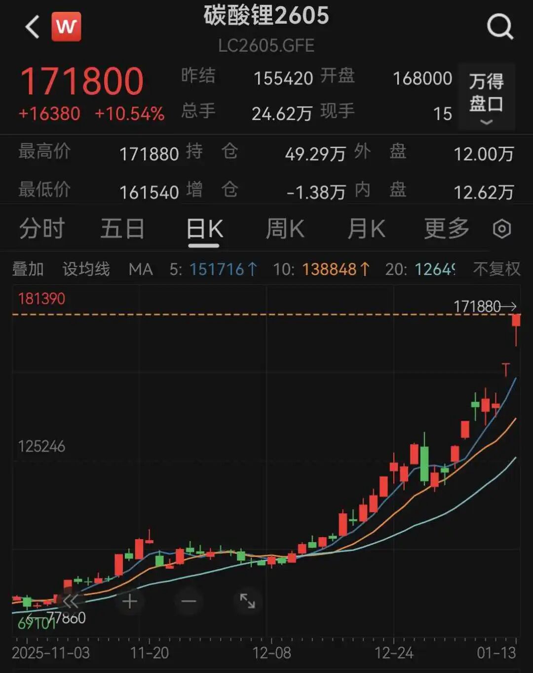 截至發(fā)稿,漲幅超10%,報171800元/噸。
