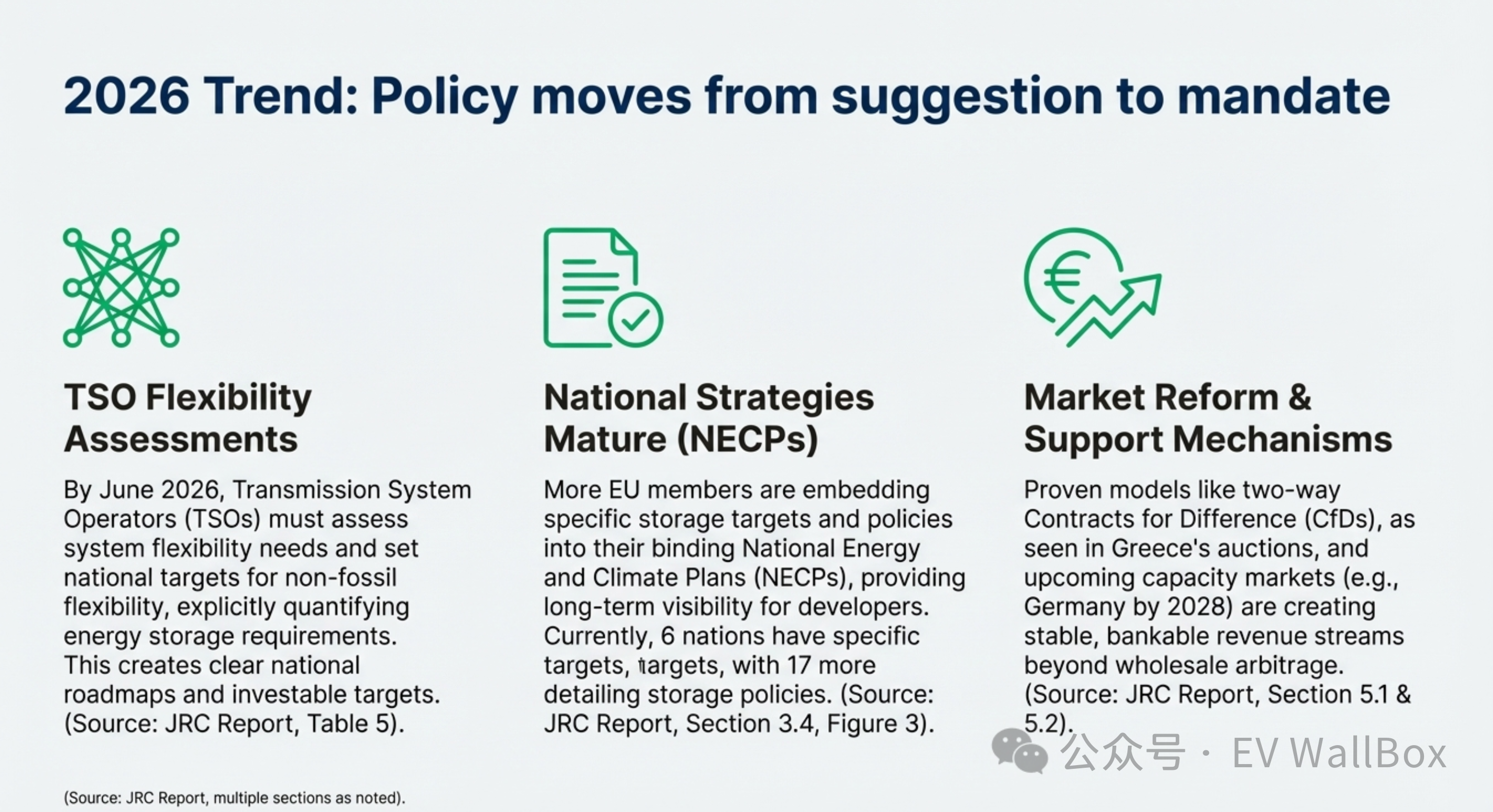**TSO靈活性評估(TSO Flexibility Assessments)**走向強制與量化:電網需要多少“非化石靈活性”,會被寫成目標與路線圖,儲能將從“可選配件”變?yōu)椤跋到y(tǒng)必需品”。