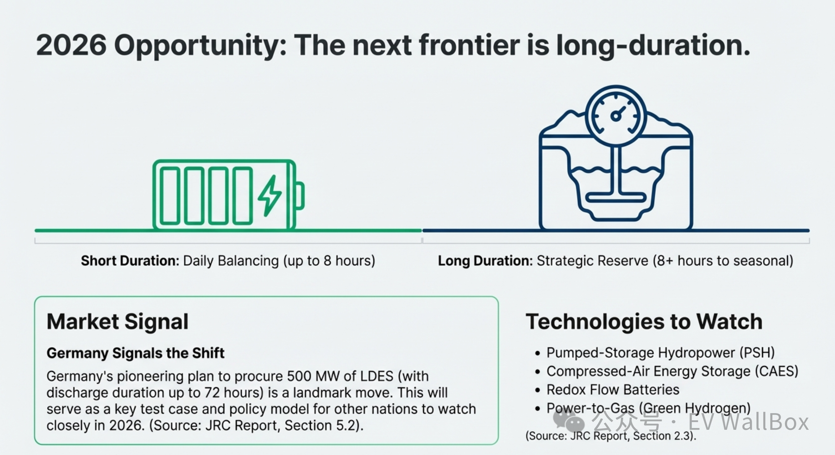 德國的信號非常強:材料提到500MW長時儲能LDES采購計劃(放電時長可到72小時量級),這是“從電池到系統(tǒng)戰(zhàn)略儲備”的政策拐點。
