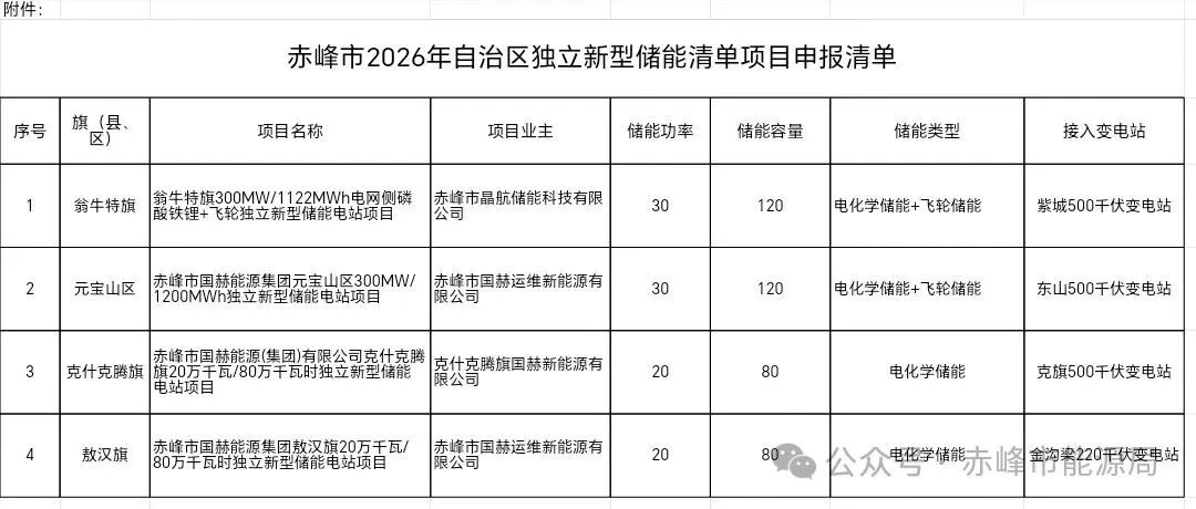 中國儲能網(wǎng)訊:1月18日,赤峰市能源局發(fā)布《關(guān)于赤峰市2026年自治區(qū)獨立新型儲能清單項目競爭性配置結(jié)果的公示》。