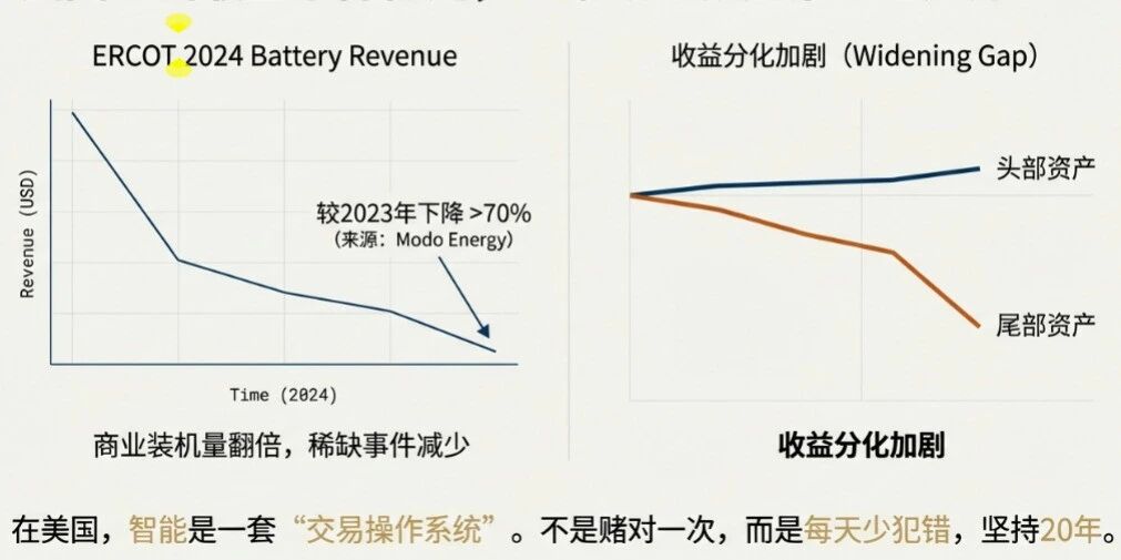 德州(ERCOT)則把另一面展示得更赤裸:當(dāng)裝機爆發(fā)、競爭加劇,收益可能在一年內(nèi)顯著回落。