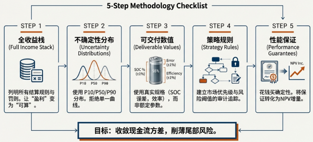 對投資人而言,真正的答案不是去預(yù)測明年的電價,而是由此用一套基于不確定性的確定模型,把收益棧做成可融資的范圍;