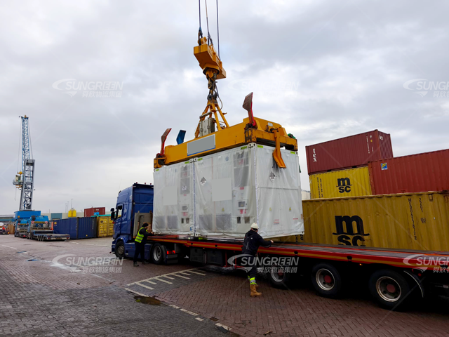 該批次儲能柜于9月底陸續(xù)自上海洋山港出運,11月初陸續(xù)抵達歐洲門戶鹿特丹港口。在船舶到港之前,舜欣物流荷蘭團隊便已啟動超限路證辦理和預清關程序。正是這種國內(nèi)外并行作業(yè)的模式,使得儲能柜在抵港后能夠快速完成清關,并立即由專業(yè)車隊接駁。根據(jù)客戶要求,貨物分別配送至荷蘭境內(nèi)的多個項目現(xiàn)場,實現(xiàn)了從中國工廠車間到荷蘭項目現(xiàn)場的“端到端”無縫交付。
