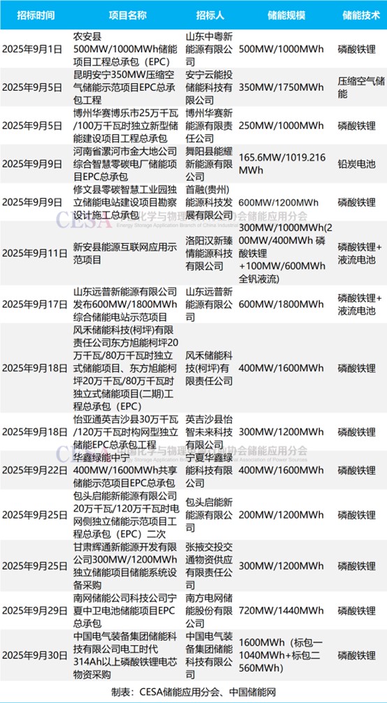 9月新增招標(biāo):新增規(guī)模43.6GWh,14個(gè)GWh級(jí)項(xiàng)目