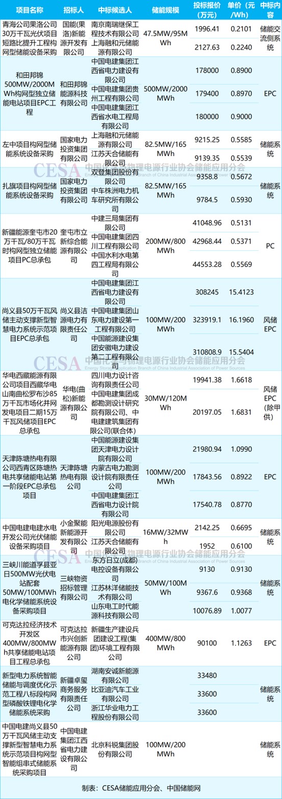 表 2025年9月構(gòu)網(wǎng)型儲(chǔ)能新增采招落地項(xiàng)目?jī)r(jià)格及中標(biāo)詳情