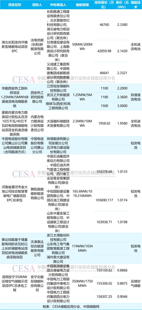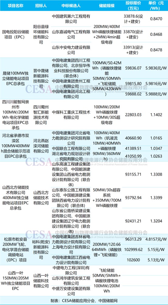 表 2025年9月混合儲(chǔ)能新增采招落地項(xiàng)目?jī)r(jià)格及中標(biāo)詳情