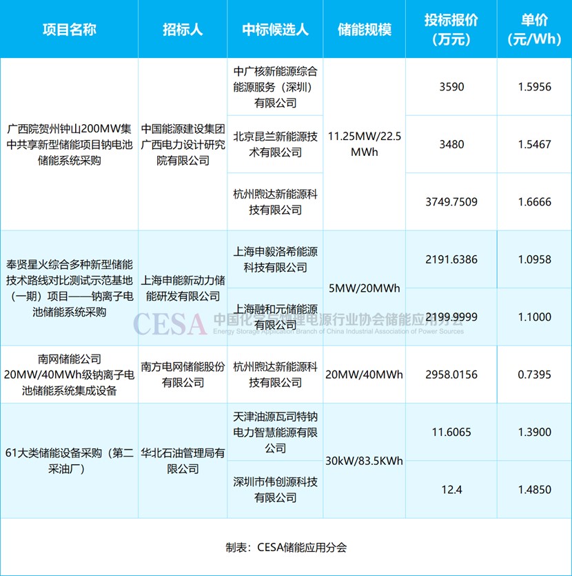 表 2025年1-7月鈉離子電池儲(chǔ)能系統(tǒng)采招落地項(xiàng)目報(bào)價(jià)