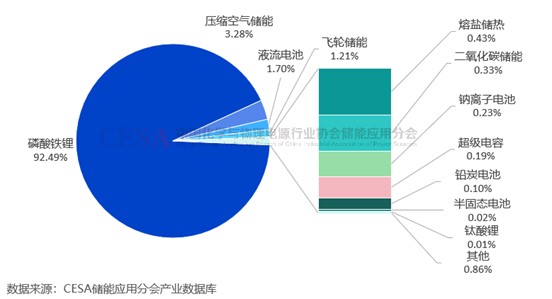 圖 2024年各技術路線儲能項目采招落地規(guī)模占比