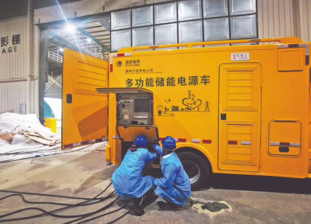 供電員工為博地影視基地氣膜方艙實驗室接入多功能儲能電源車。連志祥 攝