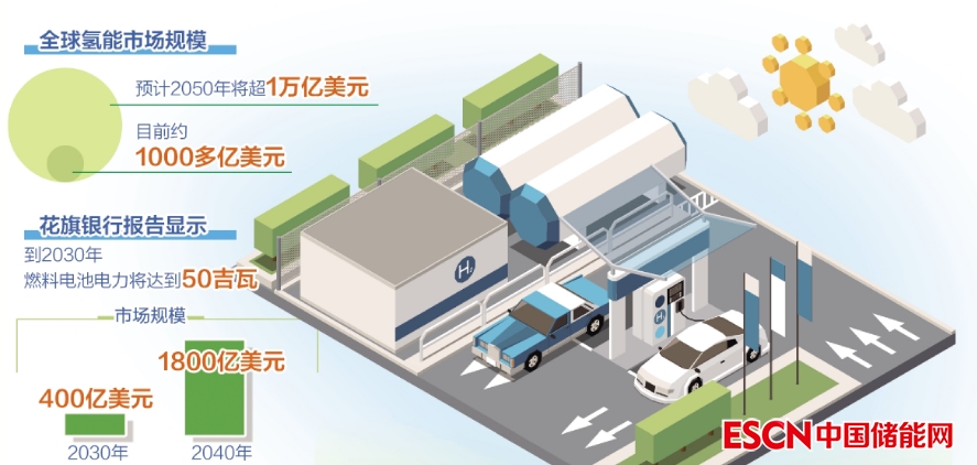其中一個被特別看好的產品就是燃料電池。業(yè)內人士分析認為,燃料電池行業(yè)是綠色能源的重要組成部分,其技術性能是干電池無法達到的,特別適用于叉車、商用車和船舶等特種運輸工具以及普通能源消費,既可以部分替代電網供電,同時還具備較低成本和供給可靠等優(yōu)勢?;ㄆ煦y行研究報告顯示,到2030年,燃料電池電力將達到50吉瓦,市場規(guī)模為400億美元;到2040年將進一步增加至1800億美元。歐盟計劃到2030年在各成員國安裝40吉瓦的可再生氫能電解槽,同時在歐盟周圍建設40吉瓦容量的電解槽。