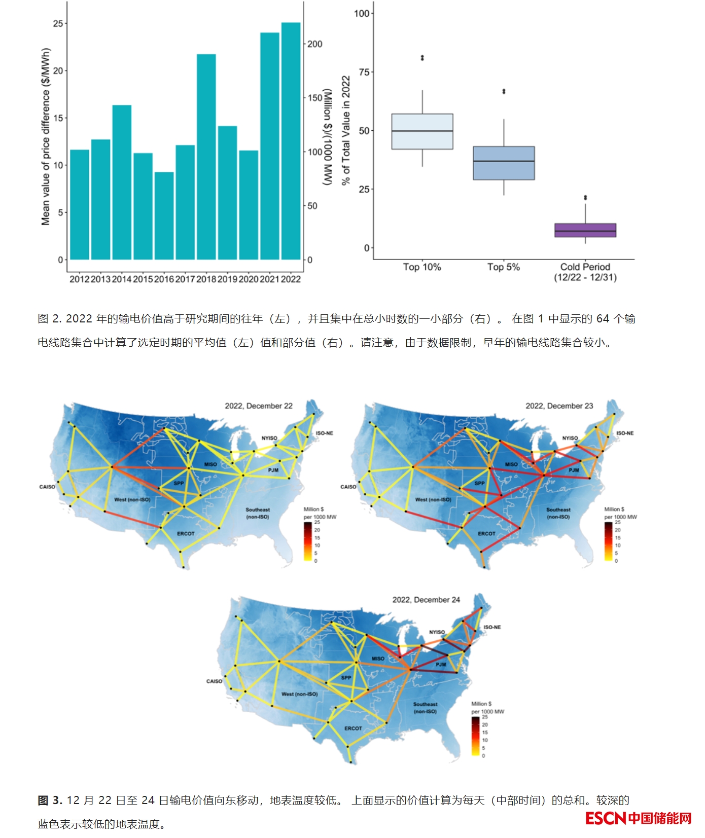 與過去幾年一樣,傳輸價值集中在總小時數(shù)的一小部分(大約 50% 的價值來自 5% 到 10% 的小時數(shù))。極端天氣或意外情況的一小部分時間的高價值表明,沒有充分模擬或考慮這些情況的規(guī)劃方法可能低估了新建輸電基礎(chǔ)設(shè)施的經(jīng)濟價值。(圖2)