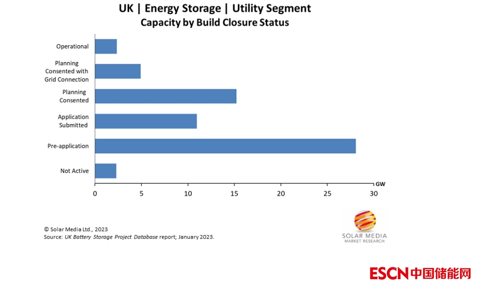 ?英國已經(jīng)批準(zhǔn)計(jì)劃部署20.2GW儲(chǔ)能項(xiàng)目的規(guī)劃,包括33個(gè)100MW或以上的電池儲(chǔ)能項(xiàng)目,這意味著這些儲(chǔ)能項(xiàng)目不太可能受到未來規(guī)劃變化的影響。這些儲(chǔ)能項(xiàng)目預(yù)計(jì)將在未來3~4年內(nèi)完成部署。