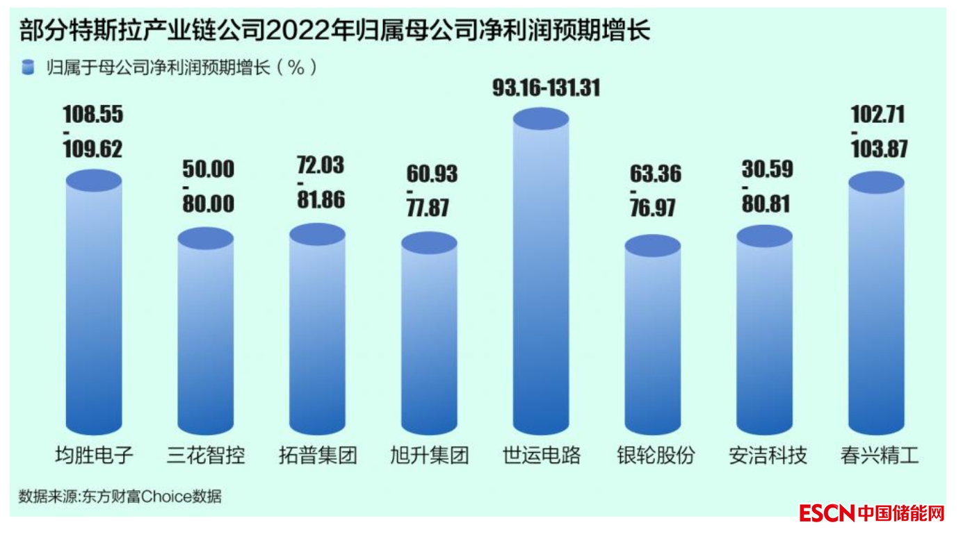 縱然經(jīng)歷了疫情、斷電、超級工廠停產(chǎn)等意外事件的滋擾,身處A股市場的特斯拉供應商們在2022年依然收獲了極為快速的增長。