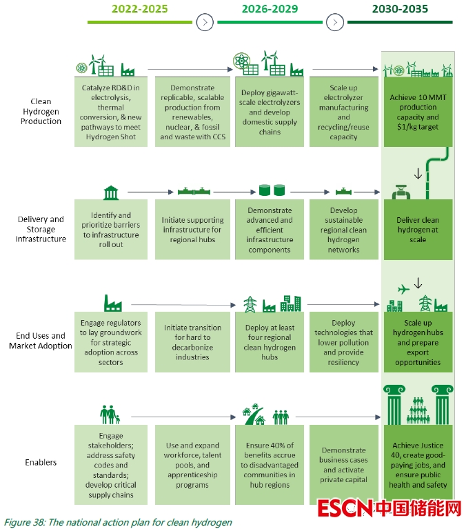 (3)聚焦區(qū)域網(wǎng)絡(luò)。這包括區(qū)域清潔氫能中心(clean hydrogen hubs),以實(shí)現(xiàn)大規(guī)模的清潔氫生產(chǎn)和就近的終端使用,還可實(shí)現(xiàn)關(guān)鍵的大規(guī)?;A(chǔ)設(shè)施,推動(dòng)規(guī)?;l(fā)展,促進(jìn)市場(chǎng)起步,同時(shí)利用基于地方的機(jī)會(huì)實(shí)現(xiàn)公平、包容和可持續(xù)性。其優(yōu)先事項(xiàng)將包括近期影響、創(chuàng)造就業(yè)機(jī)會(huì)(包括高薪工會(huì)工作)以及啟動(dòng)國內(nèi)制造業(yè)和私營(yíng)部門的投資。