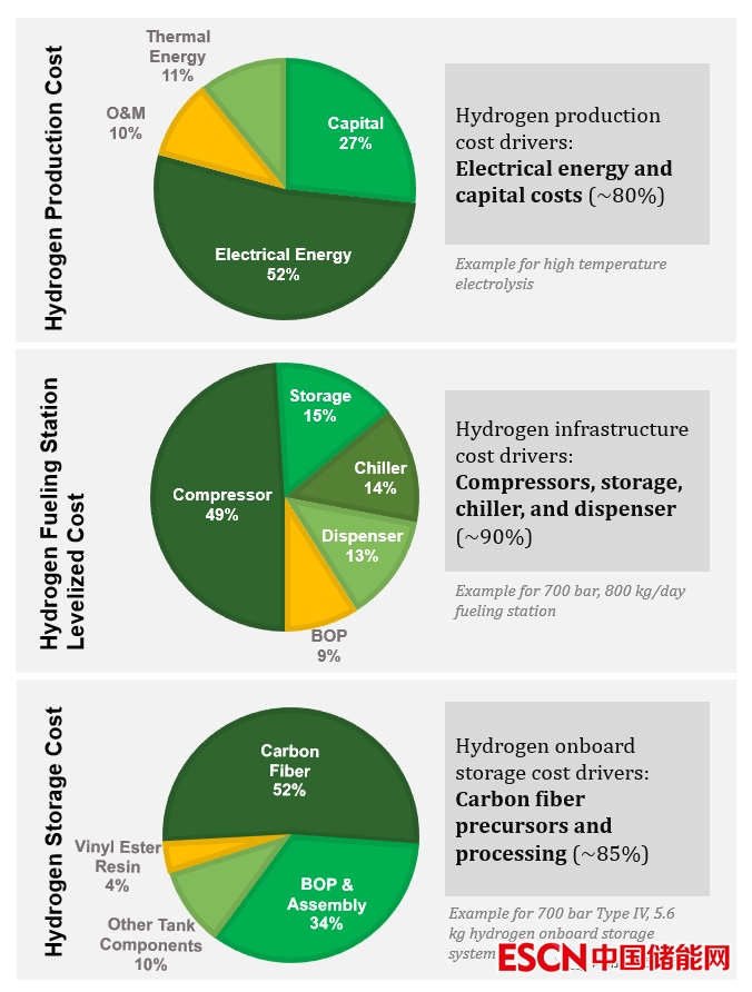 氫氣的生產(chǎn)、分配和儲(chǔ)存技術(shù)的成本驅(qū)動(dòng)因素舉例。
