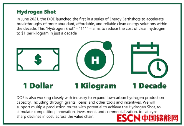 (2)降低清潔氫能成本。2021年推出的 Hydrogen Shot計(jì)劃,目的是促進(jìn)創(chuàng)新和規(guī)?;碳に綘I(yíng)部門的投資,刺激整個(gè)氫能供應(yīng)鏈的發(fā)展,并大幅降低清潔氫的成本。新的計(jì)劃,還將解決關(guān)鍵材料和供應(yīng)鏈的脆弱性的問題,并設(shè)計(jì)高效、耐用性和可回收性的技術(shù)。