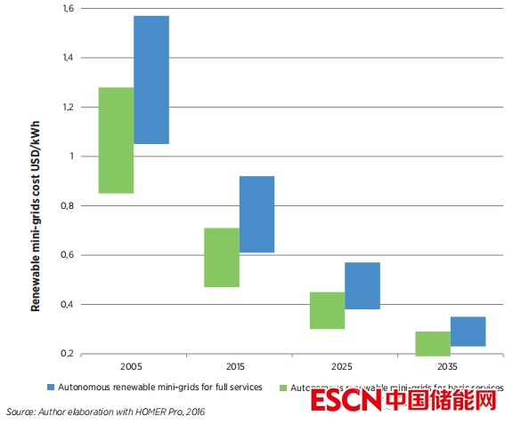 互聯(lián)可再生微型電網(wǎng)的成本降低將受到互聯(lián)主電網(wǎng)的經(jīng)濟(jì)效益的影響,但可以應(yīng)用自主電網(wǎng)的主要成本趨勢。