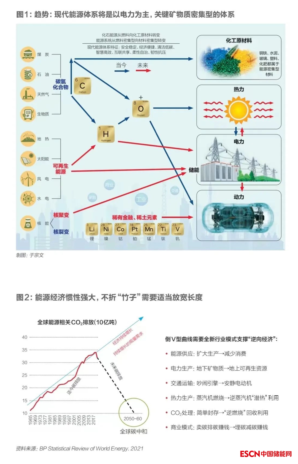 能源系統(tǒng)有三個攜帶能量的要素,一個是碳,一個是氫,另外一個是電子,這三個要素組成了現(xiàn)代能源體系。能源系統(tǒng)通過這三個要素提供的,不光是熱力、電力和動力,還提供原材料。原材料除了化工原材料之外,鋼鐵、水泥、玻璃、塑料、化肥也是能源密集型材料,一噸鋼鐵要半噸標準煤,一噸水泥起碼100公斤的標準煤。有人希望用氫能代替化石能源來生產(chǎn)這些材料,但現(xiàn)在既沒有成熟的技術(shù),也沒有好的商業(yè)模式。現(xiàn)代能源體系里還有一個要素,就是稀有金屬,或者說是關(guān)鍵礦物質(zhì)材料,它們對于能源系統(tǒng)轉(zhuǎn)型也是必不可少的。