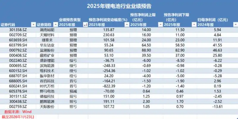 據(jù)《華夏時報》記者統(tǒng)計,截至2026年1月23日股市收盤,鋰電池行業(yè)已有16家上市公司披露2025年業(yè)績預(yù)告。這16家公司的主營業(yè)務(wù)幾乎覆蓋了整個產(chǎn)業(yè)鏈。2025年,這16家公司的合計凈利潤至少為208.93億元,最多為237.73億元,遠(yuǎn)高于2024年的110.7億元。暖風(fēng)已至,行業(yè)似乎走出過往陰霾。其中,天際股份(002759.SZ)因第四季度盈利大增而一舉扭虧,1月22日,其董秘辦工作人員告訴記者,“去年下半年,儲能需求增長導(dǎo)致供應(yīng)端出現(xiàn)缺口,產(chǎn)品價格上漲。不過,上行周期能持續(xù)多久還是取決于需求端?!?/span>