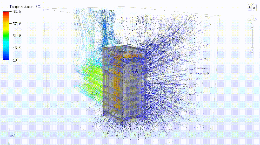 在整機(jī)設(shè)計(jì)上,采用三維立體風(fēng)道+冷熱隔離,通過(guò)CFD仿真對(duì)風(fēng)道進(jìn)行優(yōu)化,冷風(fēng)精準(zhǔn)覆蓋匯流銅排、工程接線腔等高熱區(qū)域,構(gòu)建嚴(yán)格的隔離通道,阻斷熱空氣回流現(xiàn)象。