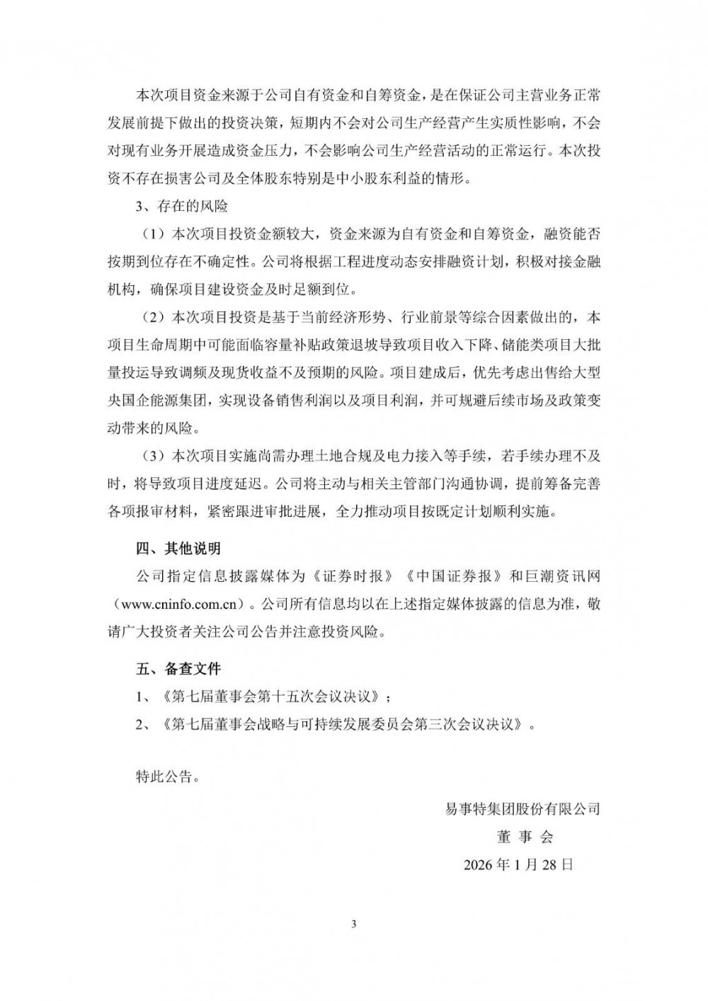 易事特表示,本次項(xiàng)目資金來源于公司自有資金和自籌資金,是在保證公司主營業(yè)務(wù)正常發(fā)展前提下做出的投資決策,短期內(nèi)不會對公司生產(chǎn)經(jīng)營產(chǎn)生實(shí)質(zhì)性影響,不會對現(xiàn)有業(yè)務(wù)開展造成資金壓力,不會影響公司生產(chǎn)經(jīng)營活動的正常運(yùn)行。本次投資不存在損害公司及全體股東特別是中小股東利益的情形。