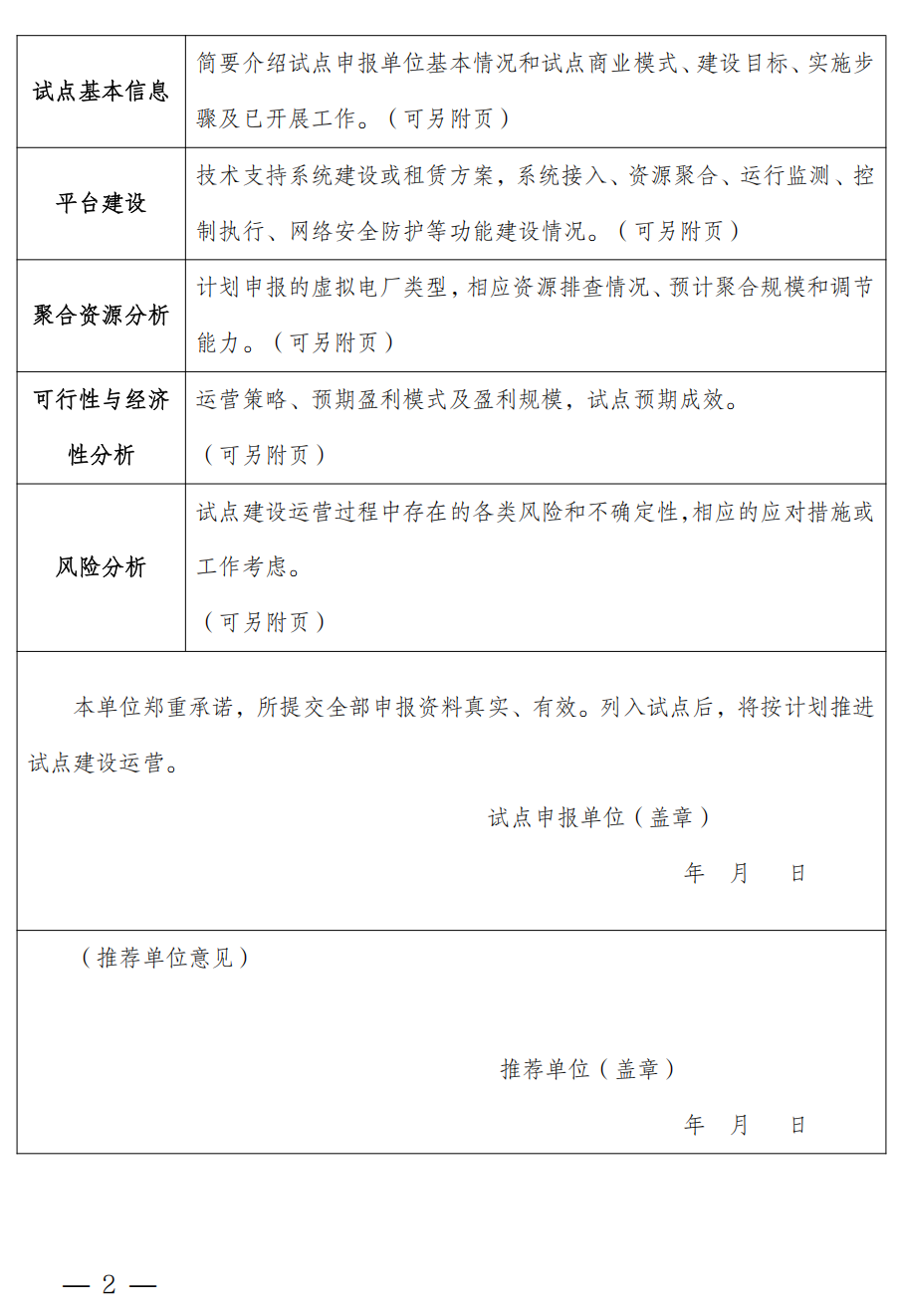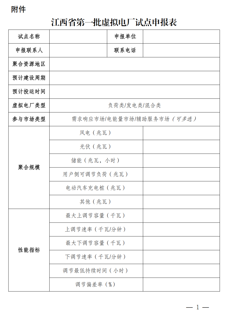 附件:江西省第一批虛擬電廠試點(diǎn)申報(bào)表