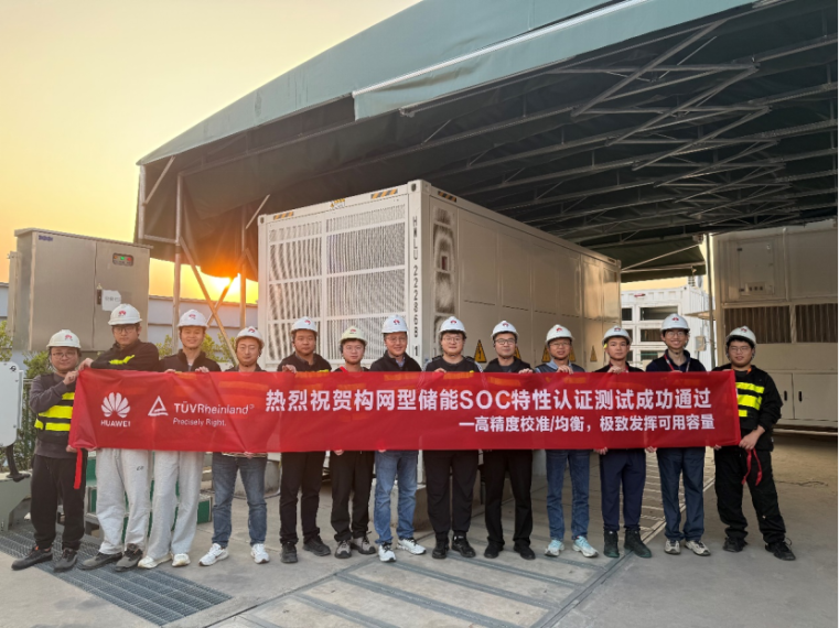 華為構(gòu)網(wǎng)型儲能平臺成功通過TüV萊茵SOC特性認證測試