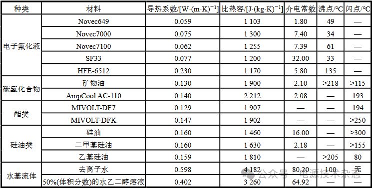 表2 浸沒式冷卻液的性能參數