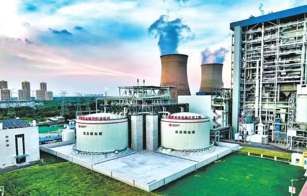 該技術(shù)成果已在該公司全國(guó)最大“火電+熔鹽儲(chǔ)能”項(xiàng)目——國(guó)能宿州熱電1000兆瓦時(shí)熔鹽儲(chǔ)熱火電靈活性改造項(xiàng)目中實(shí)現(xiàn)連續(xù)穩(wěn)定運(yùn)行,顯著提升了煤電機(jī)組對(duì)新能源的調(diào)節(jié)支撐能力。機(jī)組調(diào)峰深度由50%降至20%,每年可新增新能源消納電量約1.58億千瓦時(shí)。在此基礎(chǔ)上,每年可實(shí)現(xiàn)二氧化碳減排約13萬(wàn)噸,達(dá)成“穩(wěn)供熱、強(qiáng)調(diào)峰、促消納”的綜合效益。該項(xiàng)目為煤電機(jī)組靈活性改造和大規(guī)模熔鹽儲(chǔ)熱技術(shù)應(yīng)用提供了可復(fù)制、可推廣的技術(shù)路徑,對(duì)提升新能源消納能力、推動(dòng)構(gòu)建新型電力系統(tǒng)具有重要示范意義。