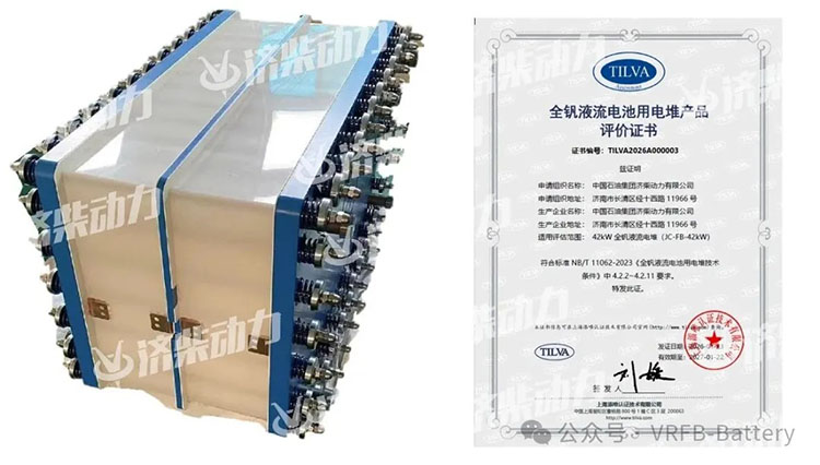 中國儲能網(wǎng)訊:1月23日,中國石油集團濟柴動力有限公司新能源科技分公司在儲能技術(shù)領(lǐng)域取得重要突破,其自主研發(fā)的42千瓦全釩液流電堆成功獲得第三方產(chǎn)品認證。