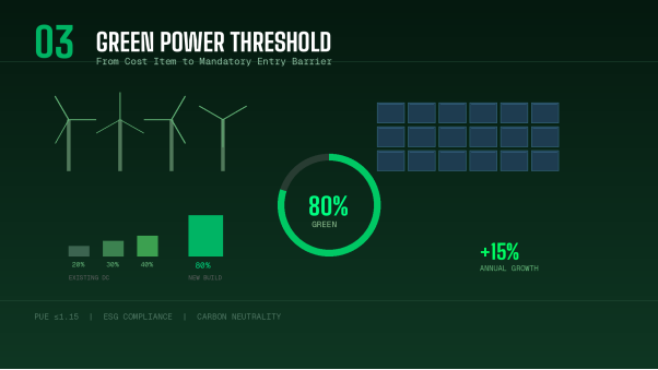 當(dāng)然,挑戰(zhàn)同樣存在。在國(guó)家新建算力中心 80%綠電消納的政策要求下,算力中心綠電直連通常僅能覆蓋 30%至 50%的電量供給,剩余部分需通過(guò)綠電綠證交易完成,而綠電綠證市場(chǎng)在未來(lái)仍面臨價(jià)格波動(dòng)風(fēng)險(xiǎn)。這意味著什么?如果智算中心無(wú)法獲取充足的綠電供應(yīng),可能連客戶(hù)招標(biāo)的門(mén)檻都無(wú)法跨越。這背后是雙重驅(qū)動(dòng):一方面是國(guó)家“雙碳”戰(zhàn)略的硬性約束,另一方面是國(guó)際大客戶(hù)對(duì)供應(yīng)鏈碳足跡的嚴(yán)格審核要求。