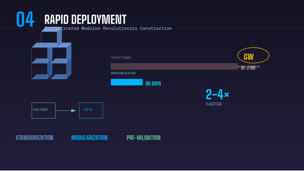 傳統(tǒng)數(shù)據(jù)中心建設(shè)周期通常需要 18 至 24 個(gè)月,但 AI 時(shí)代的算力需求等不起。算力需求的爆發(fā)式增長(zhǎng),正在倒逼整個(gè)建設(shè)模式的根本性變革。