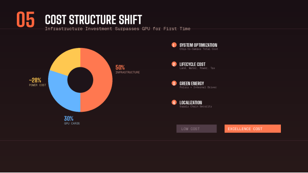 發(fā)現(xiàn)五:智算中心成本結(jié)構(gòu)顛覆——基礎(chǔ)設(shè)施投入占比首次超過(guò) GPU